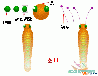 下面我們按翅膀,軀體,頭,眼和觸角的順序來制作。
