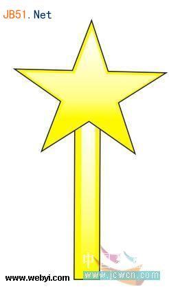 18、下面繪制小精靈手中的魔棒。選擇“星形工具”,在屬性欄中設置星形邊數:5;尖角為20,然后繪制一個星形,并設置其填充顏色為黃色(Y:100),輪廓為2 mm粗細的黑色,如圖18所示: