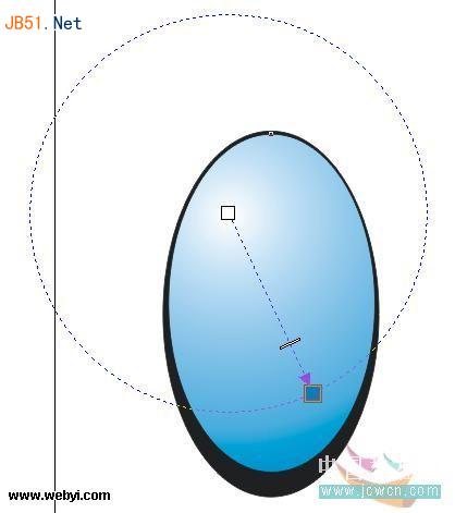 7、在工具箱中選擇“交互式透明工具”,從白色橢圓的頂部向下拖動鼠標,到橢圓底部的時候釋放鼠標,得到如圖8A所示的透明效果。