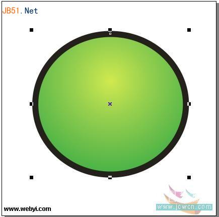 9、下面繪制小精靈的眼睛。先繪制一個橢圓,填充黑色并取消其輪廓線,如圖9所示: