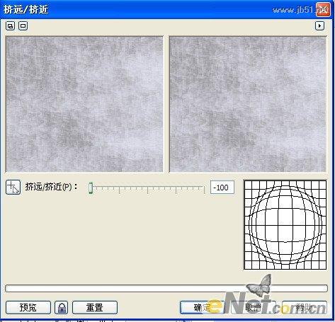 4.執行“位圖”---“三位效果”---“擠遠/擠近”命令,在打開的對話框中設置相關參數,如圖的到的圖像中間就形成可漩渦狀態。