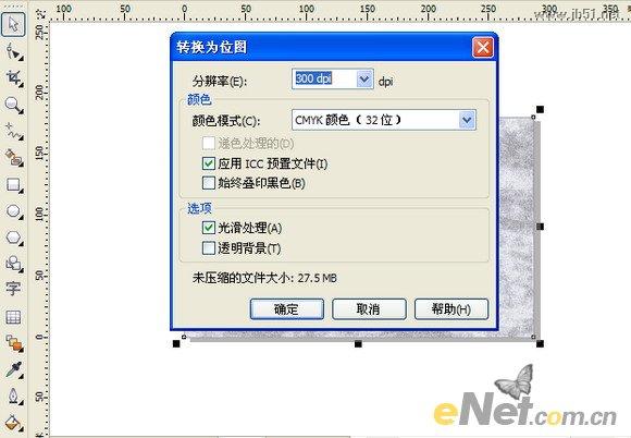 3.執行“位圖”---“轉換為位圖”命令.在彈出的提示框中設置“分辨率”為300dpi.得到圖像的顏色就增強了,如圖: