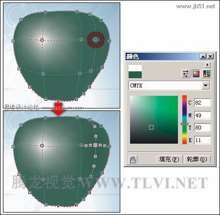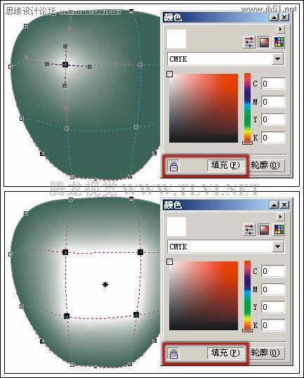 圖4-118 拖動調色板中的色塊為節點或網格填充顏色