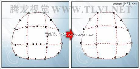 提示:將鼠標指針放置在網格線上會變成“形狀”工具圖標,讀者可以像編輯普通曲線那樣對網格線進行編輯。合理地控制節點數量不僅可以達到理想的畫面效果,還可以避免在對其調整時由于網格及節點數量過多帶來的諸多不便。