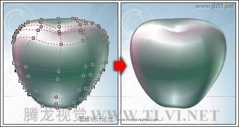 (10)參照前面添加節點,并分別對節點或網格填充顏色的方法,在蘋果圖形上依次添加節點,并對節點進行編輯,然后再填充顏色,制作出如圖4-122所示的金屬立體蘋果圖形。