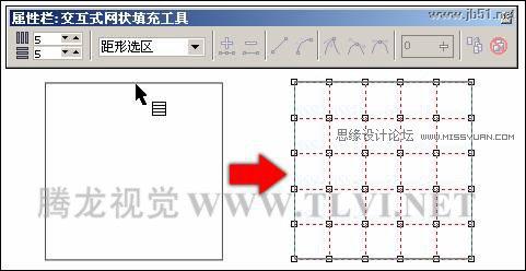 技巧:在使用“交互式網格填充”工具選擇對象之前,讀者可在其屬性欄中,設置其“網格大小”參數,然后再選擇需要應用網格填充的對象。這樣添加網格對象上的節點將會最少。更有利于編輯操作。如圖4-113所示。展示了設置網格大小后再選擇對象的效果。圖4-114所示,展示了選擇對象后再設置網格大小的效果。