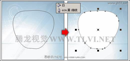 (3)選擇工具箱中的“貝塞爾”工具,在頁面中繪制出蘋果圖形的輪廓路徑,然后將其填充色設置為白色,輪廓色設置為60%黑色,如圖4-111所示。