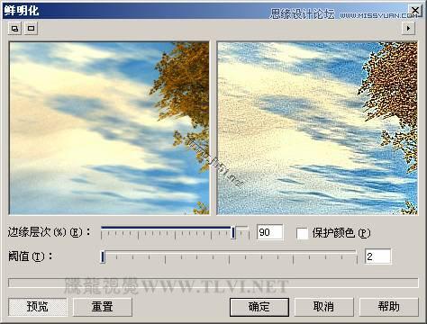 (10)在“對象”泊塢窗中單擊“對象 5”,執行“效果”→“鮮明化”→“鮮明化”命令,參照圖9-34所示設置對話框,將圖像鮮明化。