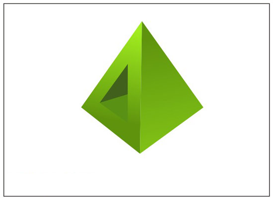 步驟一、選擇工具箱中的貝塞爾工具,然后在畫布中繪制一個三角形,接著利用漸變工具進行填充,填充效果如圖所示: