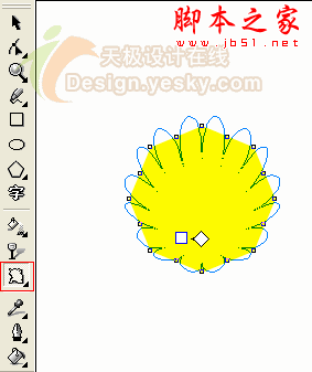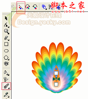 第4步:點擊“工具箱”→“交互式調和”工具,在黃色圖形上單擊并拖動鼠標指針到白色的圖形上,在屬性欄中單擊“逆時針調和”按紐,如下圖: