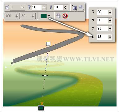 (9)保持曲線的選擇狀態,選擇工具箱中的
