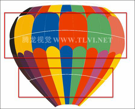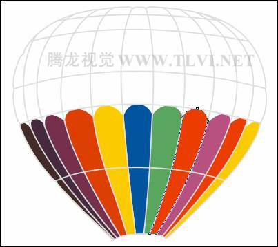 “貝塞爾”工具,參照熱氣球上的網格,在上面繪制圖形,并分別設置其填充顏色,如圖12-40所示。然后使用“選擇”工具框選繪制的圖形,按下<Ctrl+PageDown>鍵,調整其順序到氣球上網格圖形下面。