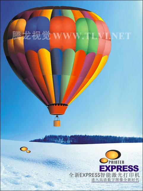 本實例制作的是激光打印機的宣傳海報,設計時應主要考慮的是整體畫面的顏色和清晰度,因為這兩項將是突出打印機賣點的主要內容。在該實例中通過繪制色彩豐富、鮮艷的熱氣球圖形,并通過高清度的畫面效果,從而突出打印機的打印效果,起到該海報宣傳的目的。圖12-36所示為該實例的完成效果。