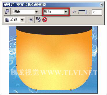 “交互式透明”工具,為背景添加線性透明效果,如圖12-92所示。