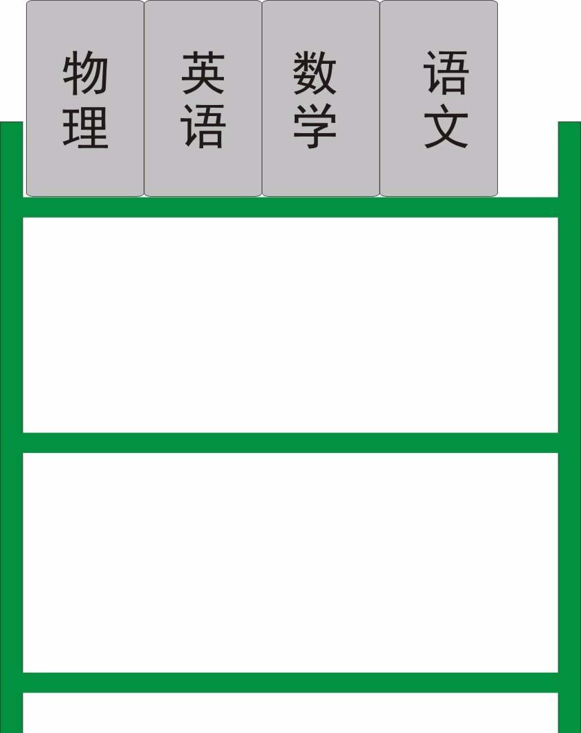 4、之后把書本復制三份,分別在灰色的書本上面寫上語文、數學、英語、物理的書名,字體的顏色用黑色比較明顯,如下面圖紙所示