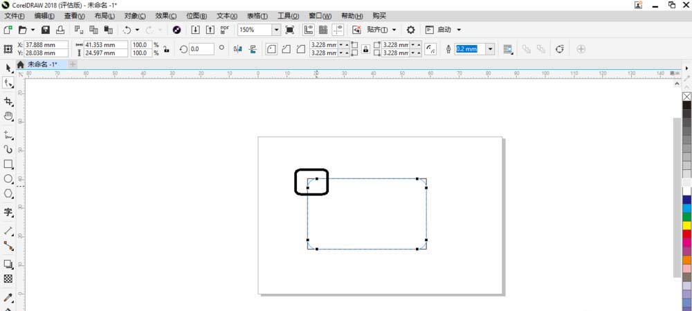 1、啟動CorelDRAW 2018界面后在畫板中先繪制矩形。