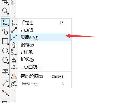 注意:在貝塞爾模式下,按住要開始剪切對象的位置,然后將控制手柄拖動到要定位下一個節點的位置,再單擊。繼續單擊以向該線條添加更多直線段。要添加曲線段,請指向要放置該節點的位置,然后拖動以對該曲線造型