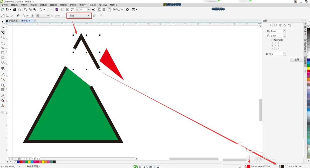 2、當輪廓選項為自動時,用刻刀工具切割對象后,可以看到,切割后的對象成為獨立對象,閉合圖形還是閉合圖形,輪廓線段還是輪廓線段。是圖形原來的默認效果。