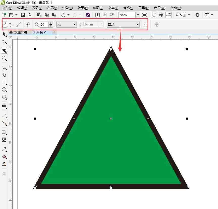 5、大家可以看到輪廓選項后面還有一個【邊框】標識,如下圖,【邊框是使用曲線工具是顯示或隱藏邊框的】,當邊框沒有激活時,選擇的對象四周會有8個邊框觸點顯示,當激活邊框時,將會隱藏邊框觸點。