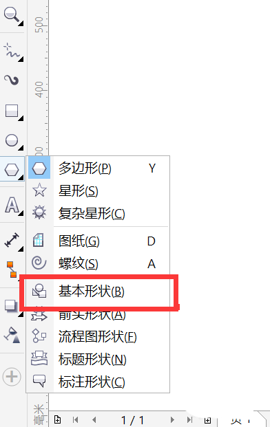2、點(diǎn)擊左邊多邊形-基本形狀
