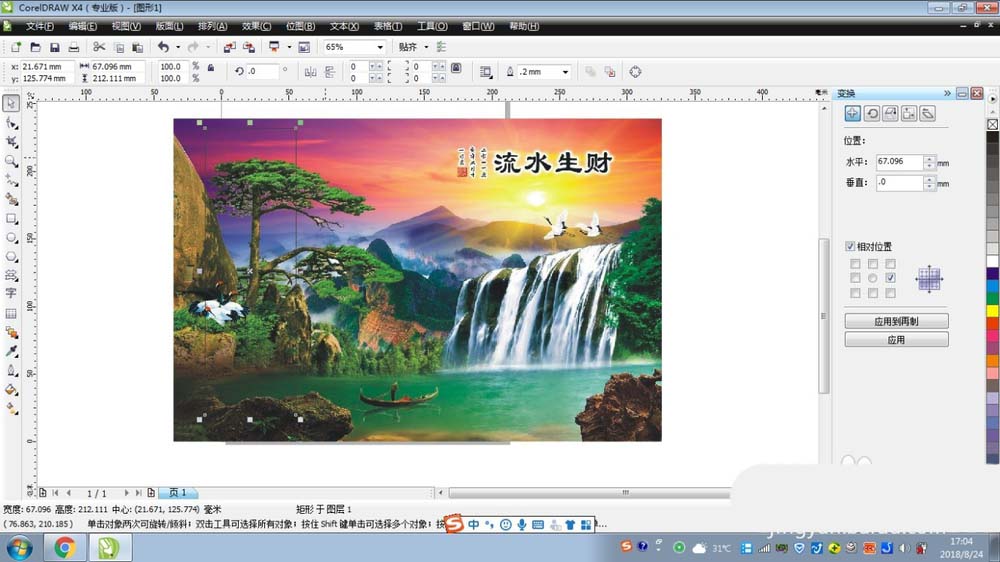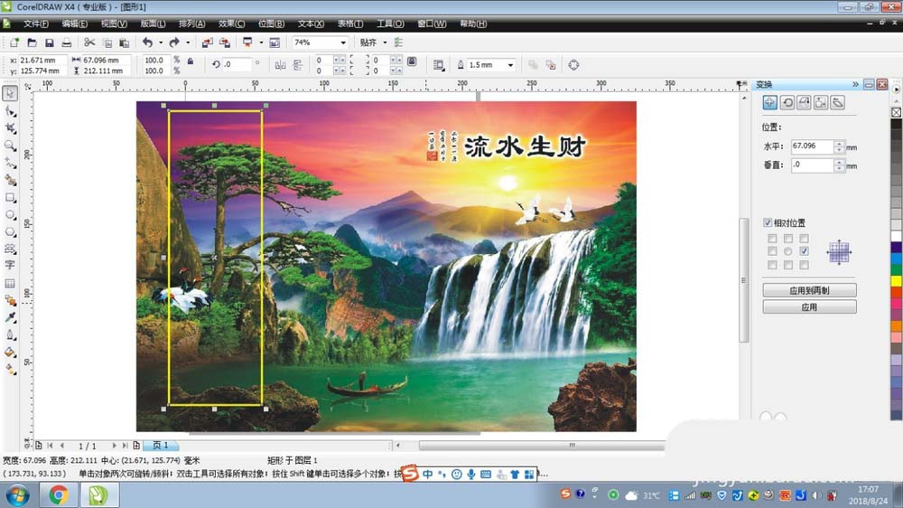 1、復制一份山水圖片,黏貼到CDR的繪圖區域中,然后在圖片的里面繪制一個四方形的圖形。