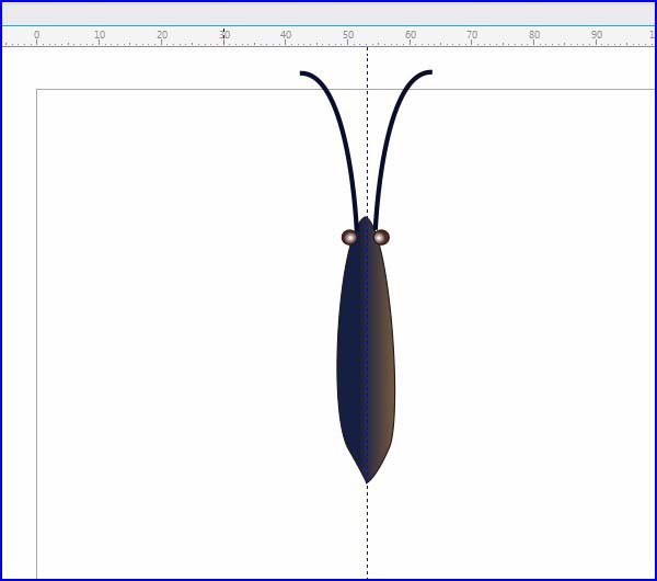 1、用“貝塞爾工具”、“橢圓形工具”畫出蝴蝶中間部分,可拉出輔助線,用“形狀工具”調整,并用“交互式填充工具”漸變效果,如圖所示: