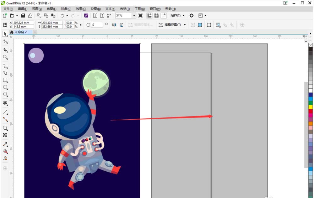 3、把拖拽進來的圖片放到軟件的左邊,鼠標左鍵選中圖片,往右移動鼠標,松開左鍵的同時點擊鼠標右鍵,就會在右側直接復制出來一張圖片。方便我們之后轉換矢量圖時觀察。