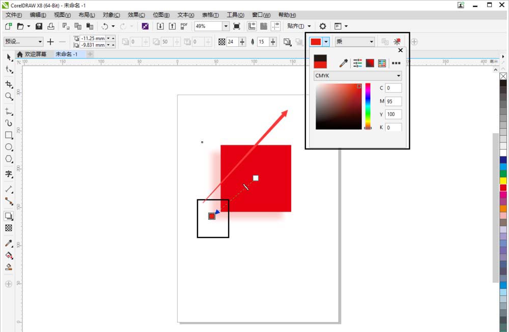 1、首選打開CDR,并繪制一個矩形框,填充一個紅色。