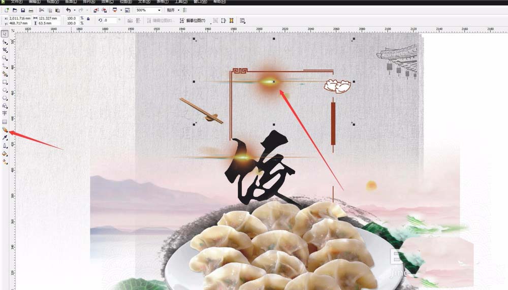 6、但是我們在CDR中添加功效,容易出現印刷錯誤,所以為了更保險,需要將這個光效更改為普通的圖片圖層。選擇這個光效,然后點擊位圖——轉化為位圖,分辨率300.勾選透明背景