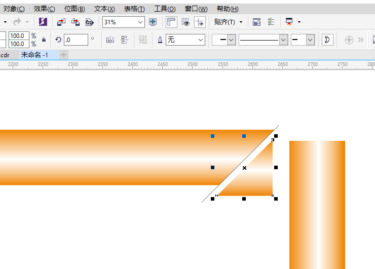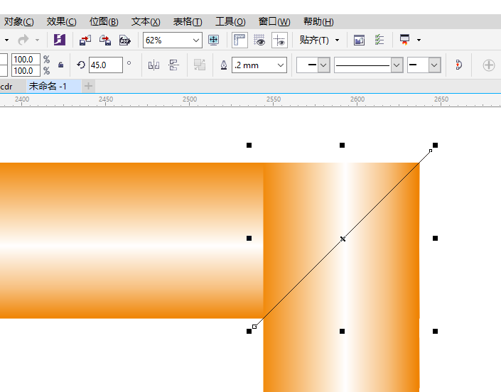 5、再對垂直框切割,這時候可能需要對垂直邊重新調整漸變填充。
