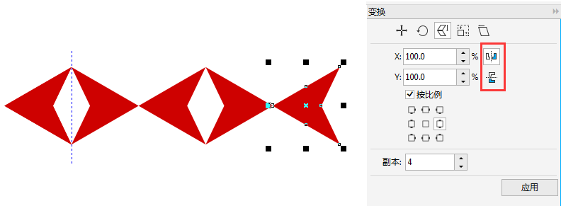 點擊第一個鏡像按鈕,圖形呈水平方向鏡像;點擊第二個鏡像按鈕,圖形呈垂直方向鏡像。