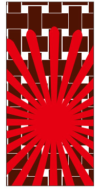 8、精確裁剪。將旋轉(zhuǎn)后的所有圖形進(jìn)行群組,執(zhí)行“對象”→“圖框精確剪裁”→“置于文本框內(nèi)”命令,當(dāng)光標(biāo)變?yōu)楹谏拇蠹^時,單擊矩形,得到的效果如圖所示。