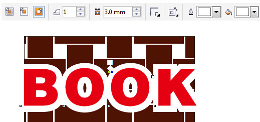 11、添加輪廓。選中文字,選擇“輪廓圖工具”,在屬性欄中進(jìn)行參數(shù)設(shè)置,得到的圖形效果如圖所示。