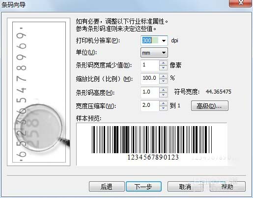 6、然后單擊下一步,設置條形碼的參數(shù)。