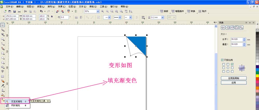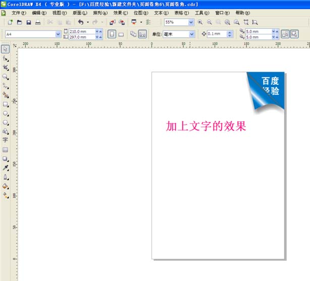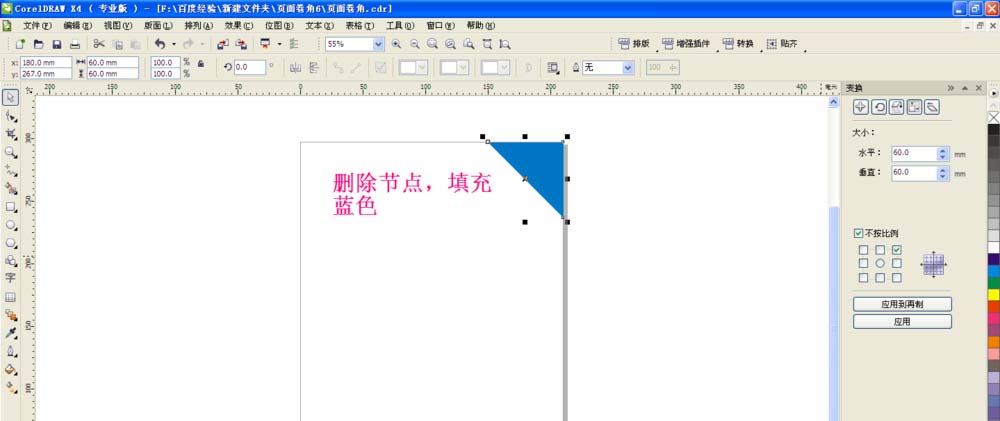 1、在頁面右上角畫個正方形,大小約60X60mm