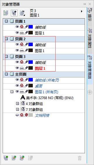 單擊“對象管理器”泊塢窗左下角“新建主圖層(所有頁)”按鈕,新建一個主圖層為“圖層1(所有頁)”。