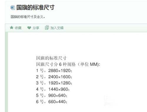 1、在百度文庫中查詢得知,國旗的標準尺寸是:1 號,2880×1920;2 號,2400×1600;3 號,1920×1280;4 號,1440×960