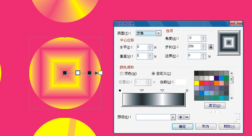 CDR中透明工具做出兩端透明和四周透明等特殊透明效果。首先大家要明白黑色透明白色不透明,畫一個鉅形,拉上線性透明,黑色的那端就透明了,點(diǎn)擊屬性欄上面第一個圖標(biāo)打開漸變透明度對話框,把2端調(diào)整成黑色中間是白色就做出了2端透明效果,大家可以任意拉出自己想要的效果。