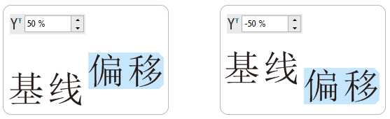 4. 數值越大,文字偏移位置越大,輸入一個正值,被選中的文字便會相應的上移;而輸入一個負值,文字便會相應的下移,如下圖(右)所示。