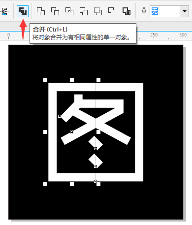 4. 最后,用“選擇工具”框選左側被打散圖形,執行“合并”操作,相同的方法組合另一半,即成了兩半,如圖所示。