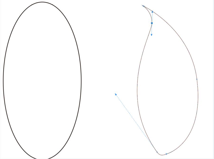 2、繪制葉子,橢圓工具繪制一個橢圓轉曲,用形狀工具調成葉子狀,填充漸變,如圖