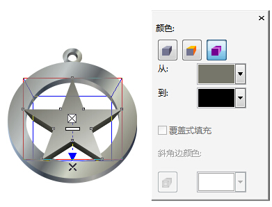 7、 添加立體效果選擇工具箱中的“立體化工具”給五角星添加立體效果,設置屬性欄中“立體化顏色”從淺灰到黑的過程,如圖所示。