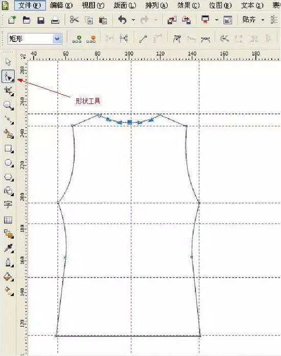 2、選擇“形狀工具”,對衣片的基本形狀進行調整。