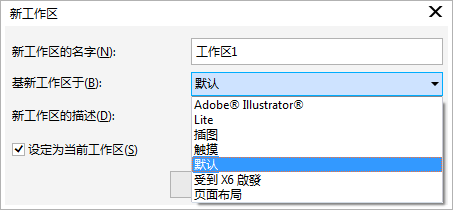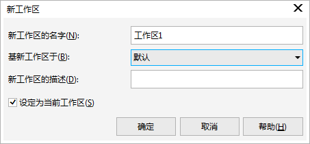 3. 從“基新工作區(qū)于”列表框中,選擇一個(gè)當(dāng)前工作區(qū)作為新工作區(qū)的基礎(chǔ)。如果要包括關(guān)于工作區(qū)的描述,請?jiān)谛鹿ぷ鲄^(qū)的描述框中鍵入描述文字。