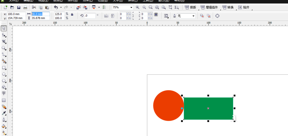 1、在文檔中先畫一個矩形,再畫一個圓形(現在使矩形與圓水平相切,矩形位置不變)。