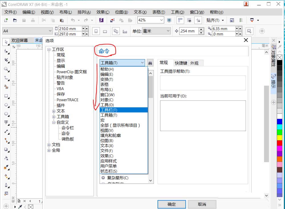 4、選擇需要設置為快捷鍵的工具或屬性選項
