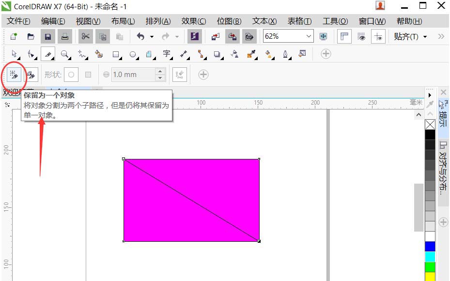 6、刻刀工具的使用,有兩個按鈕一定要注意,就是剪切是自動閉合和保留為一個對象。一般情況下是關閉保留為一個對象按鈕,不然刻刀刻出的的圖形是在一起不能分開的