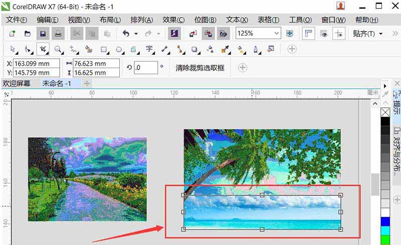 3、選擇裁剪工具,框選我們要選擇的區域,這里框選大海,雙擊框選區域,完成裁剪
