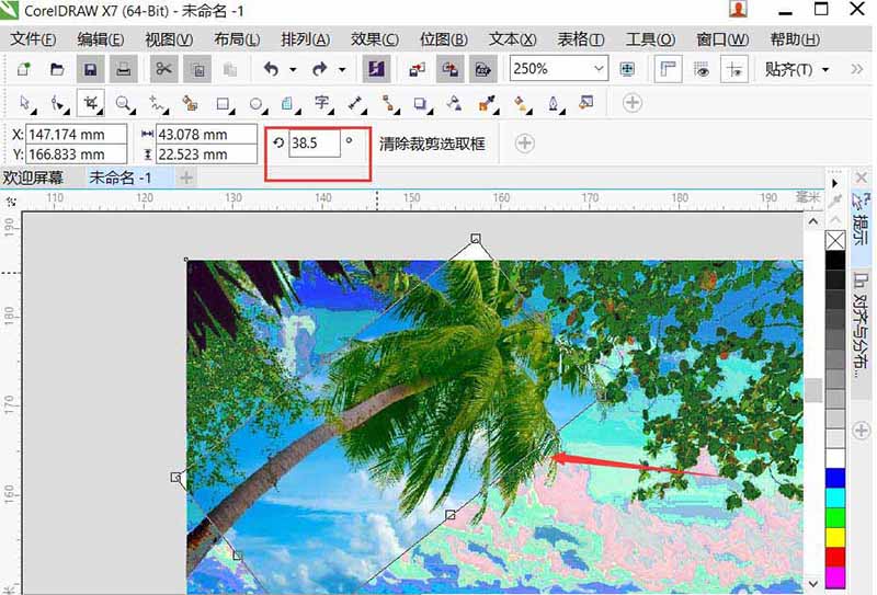 4、要裁剪傾斜的圖形,我們可以先框選大概范圍,單擊框選區域進入旋轉模式,或者上方選擇旋轉角度
