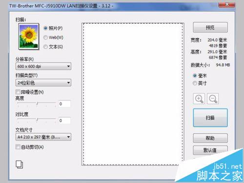11、出現“用Brother Mfc-J15910dw lan 掃描”的對話框,按掃描,如圖所示